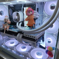 整了个可爱的阿尼亚机箱摆件(之前风扇灯光颜色不对,换了2个风扇,现在总算是对咯)