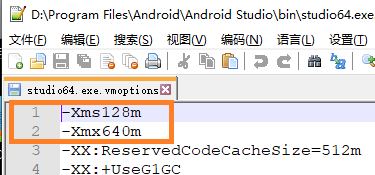 ②前两行:第一行:-Xms?m、第二行-Xmx?m,问号为数值,修改为编辑前的一半即可,保存退出。